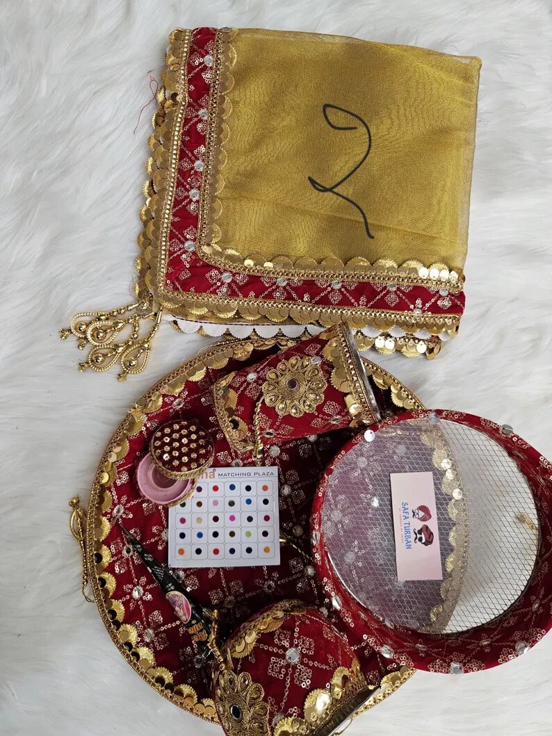 Karwa Chauth Special Puja Thali Set- 8 Items (Red Colour) $47.99